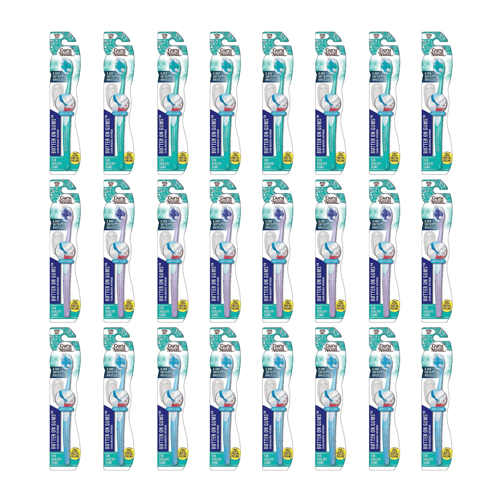 - EXTRA SOFT BRISTLES FOR SENSITIVE GUMS: GuruNanda Butter on Gums Toothbrush (Pack of 24) is made with 8000+ SoftexTM bristles technology, which compromises of ultra-soft bristles, to help reduce receding gums, and is gentle for sensitive teeth.?