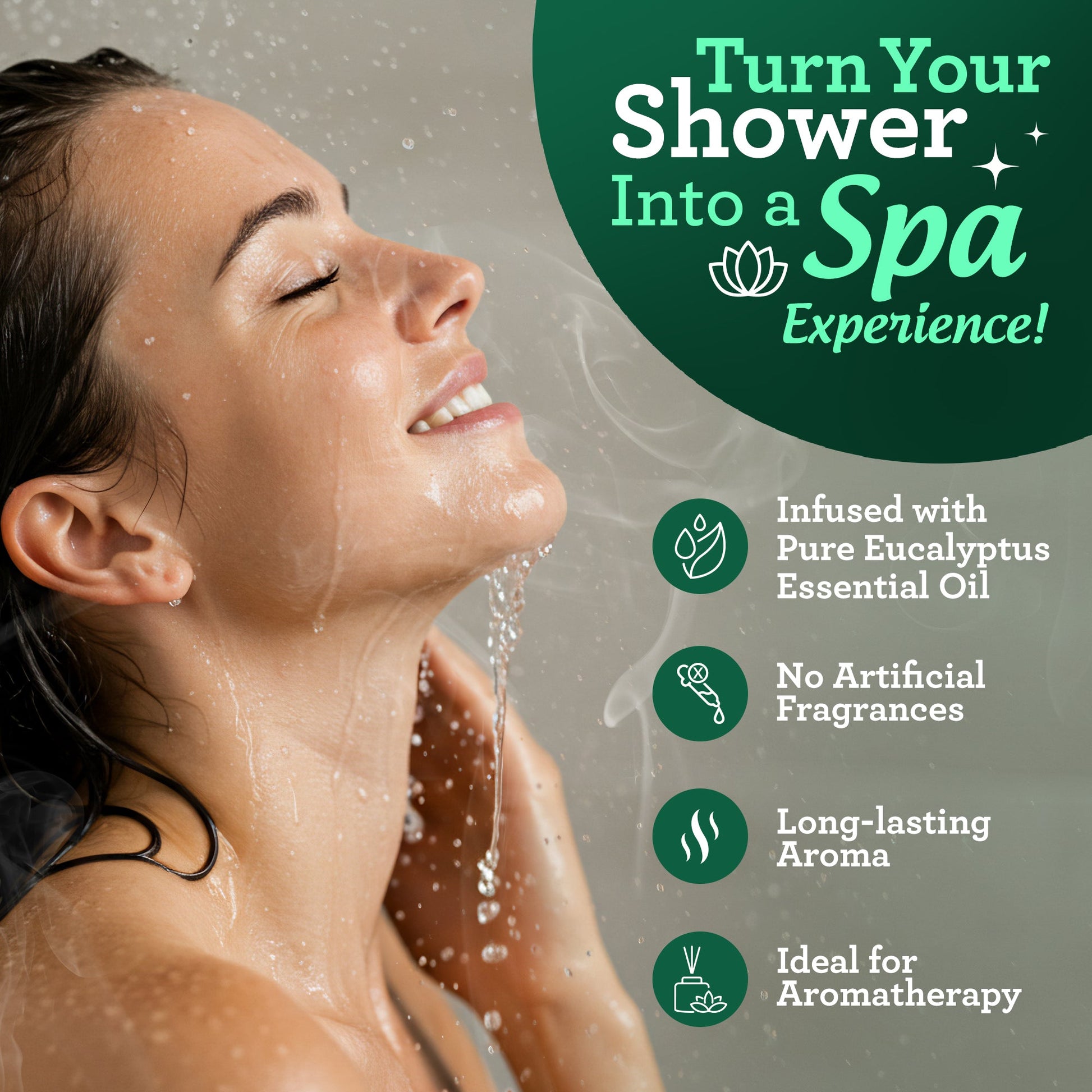 INDULGE IN WELLNESS: Our shower steamers are infused with 100% pure menthol, eucalyptus, camphor, and cedarwood essential oils, delivering an invigorating aroma that soothes your senses and provides ultimate relaxation through aromatherapy.