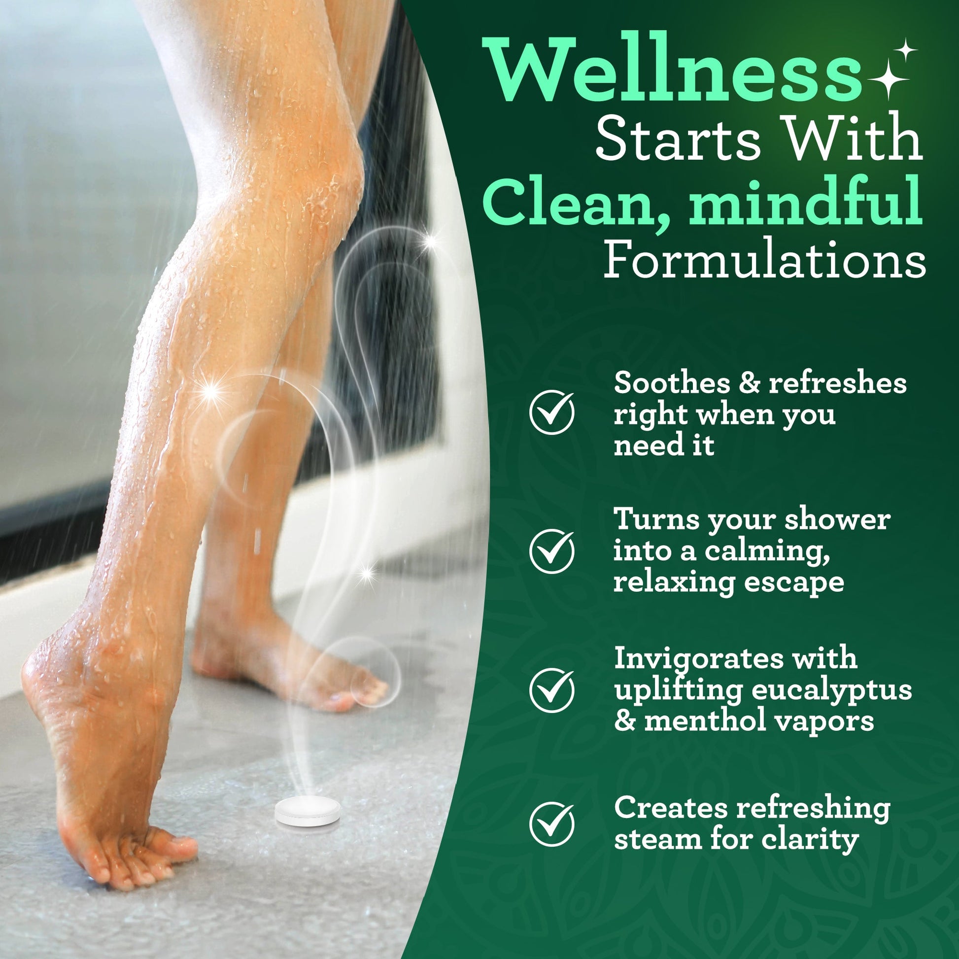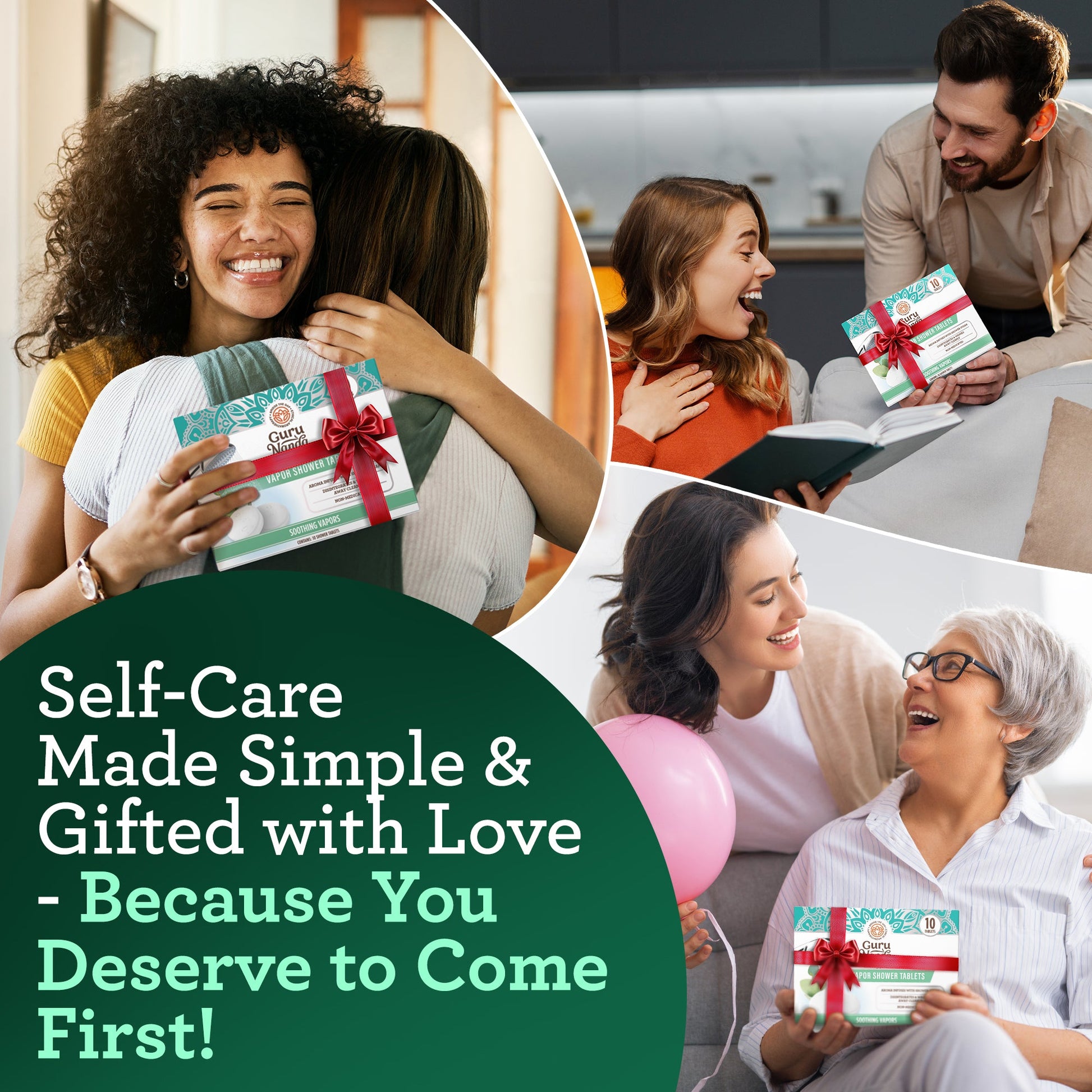 TRANSFORM YOUR SHOWER INTO A SPA!: Revitalize with our GuruNanda shower tablets, infused with 100% natural eucalyptus & menthol. They dissolve cleanly, releasing a long-lasting, refreshing aroma that elevates your mood and melts away stress.