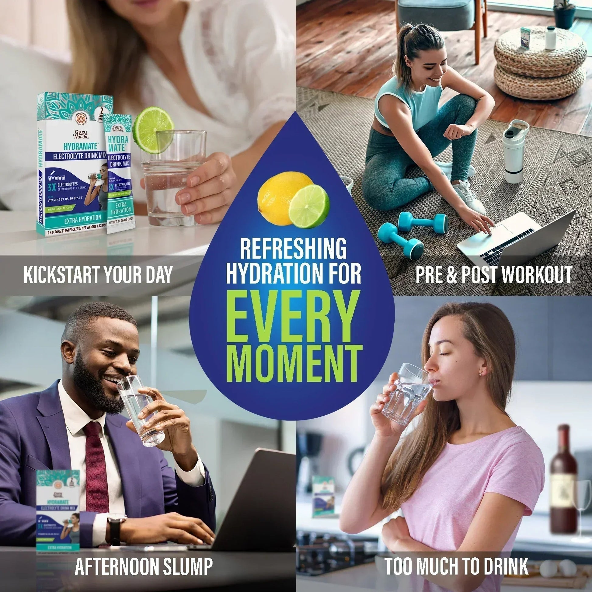 - ENHANCED ELECTROLYTES WITH LOW SUGAR CONTENT: With 3 times the electrolytes and 75% less sugar compared to sports drinks, each Hydramate SupportTM sachet aids in rapid dehydration relief. The sodium-glucose cotransport, along with pure cane sugar and dextrose, supports efficient fluid absorption for sustained hydration levels.