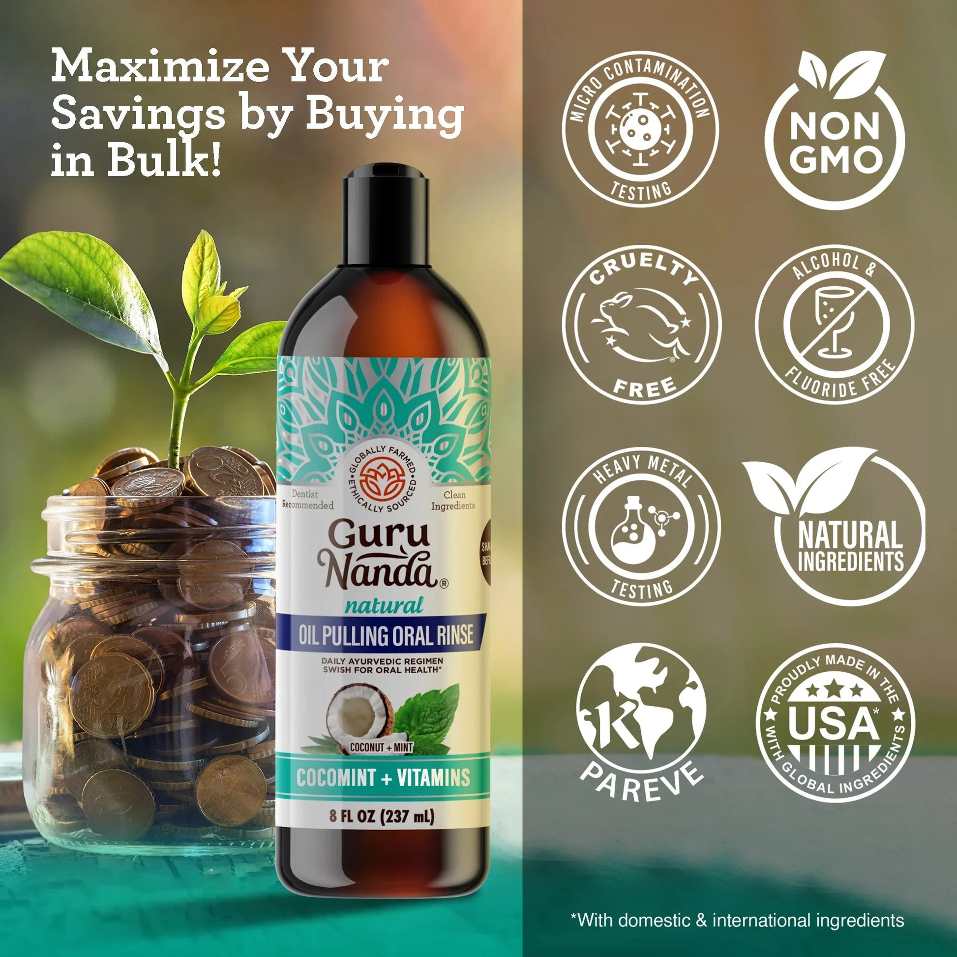 GuruNanda Pulling Oil provides up to 12 hours of fresh breath, & promotes gum hygiene. Designed to complement brushing, flossing, and rinsing, this oil pulling adds a preventive layer to your oral care routine.