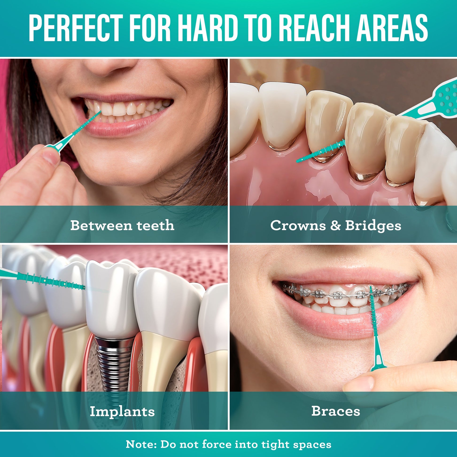 EFFORTLESS: Effortlessly navigate between teeth, gently massaging gums. Avoid the urge to force into tight spaces, ensuring a safe, comfortable, and thoroughly clean each time you use our interdental picks. A great alternative to regular flossing.